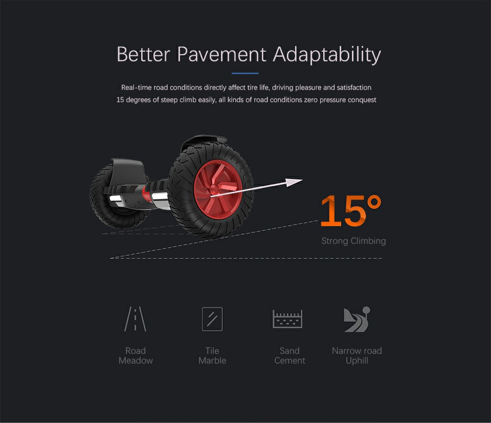 Max speed : Up to 9 mph / 14.4 km/h Max Distance : Up to 8 miles /12.8 km